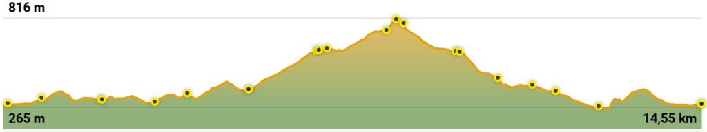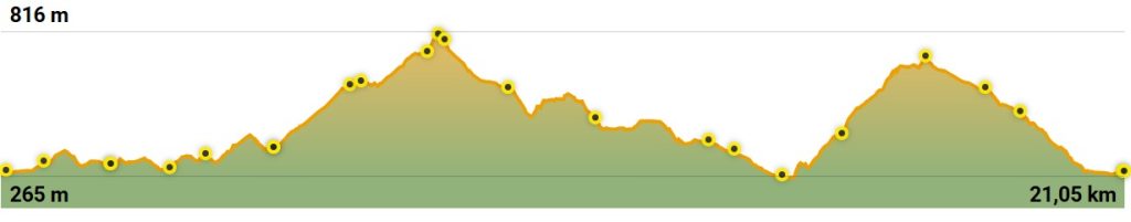 Son 15 km de distancia y 1.000 m de desnivel acumulado, de una dificultad alta, apropiado para quienes están acostumbrados a subir al monte.